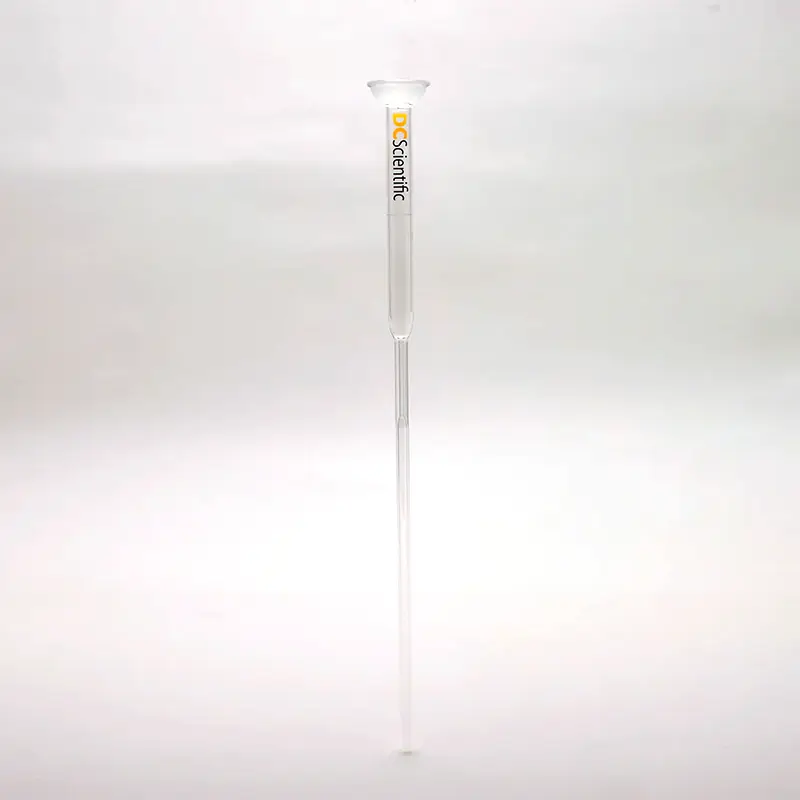 此款标准锥形头加料柱严格遵循ASTM D1319标准要求制造,采用优质玻璃材料精密加工而成。锥形头设计不仅提供了优异的密封性能,还优化了样品的流动路径,使不同烃类组分的色带分离更加清晰和稳定。柱体透明度高,便于观察整个分离过程,确保测试结果的准确读取。